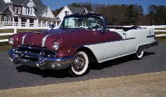 SOLD 1956 Pontiac Starchief less than 4,000 miles on photo documented frame-off restoration using N.O.S. parts, correct date coded 317 cu. in. 227 H.P. V/8 , auto transmission, power steering, power brakes, power top continental kit, dual bumper exhaust, twin remote spot lights, wire hub caps, bumper guard option, real leather interior, stainless skirts, am/fm cassette radio conversion, excellent driving classic-runs and drves as good as it looks.